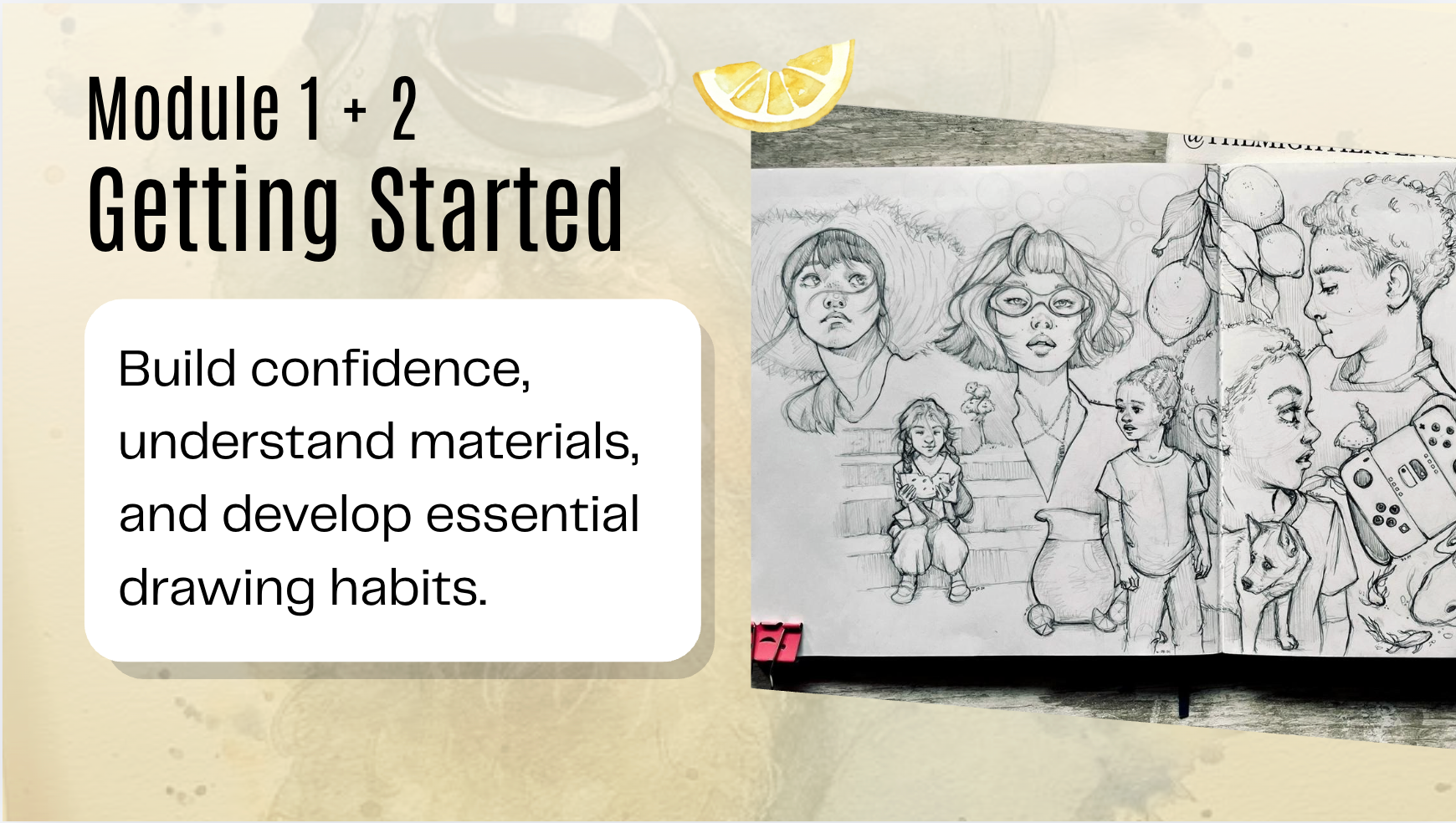 My goal for you isn't perfection. It's progress page by page, lesson by lesson, one sketchbook spread at a time.